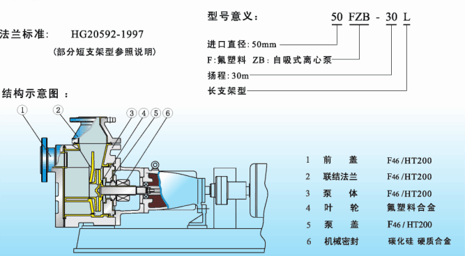 FZB氟塑料自吸泵是按國際標(biāo)準(zhǔn)并結(jié)合非金屬泵的工藝設(shè)計(jì)制造。泵體采用金屬外殼內(nèi)襯氟塑料,過流部件全部采用氟塑料合金制造,泵蓋、