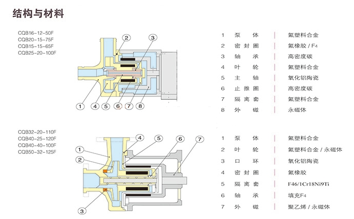 CQB型磁力泵是化工流程中杜絕跑、冒、滴、漏現(xiàn)象,消除環(huán)境污染,創(chuàng)造“無(wú)泄漏車間”、“無(wú)泄漏工廠”,實(shí)現(xiàn)安全、文明生產(chǎn)的理想用泵。